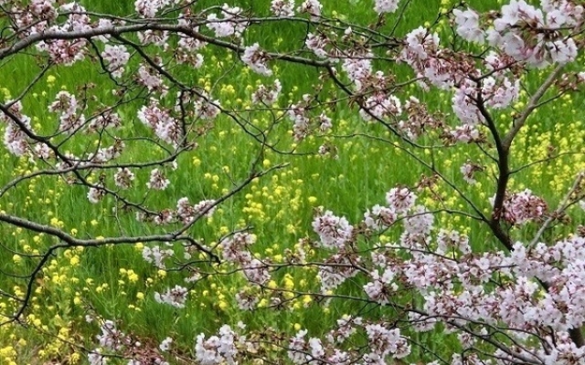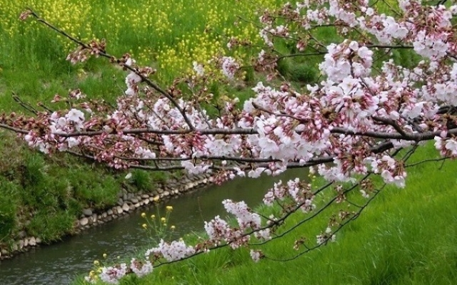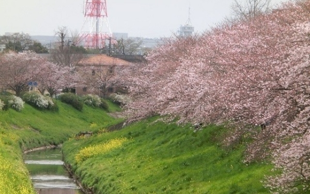 お昼を食べ終え、満腹満足で歩いて豊田川へ向かいました。豊田川は「天の川」という愛称で茂原市民に親しまれています。さすが七夕の街ですね。川沿いには多くの桜の木が植えてあり、菜の花と綺麗なコントラストを描いています。今年は寒いせいか、7~8分咲きといったところでした。豊田川沿いのお気に入りは、道表橋にある枝垂れ桜。1本桜で風情があります。でも残念ながら5分咲きほどでした。