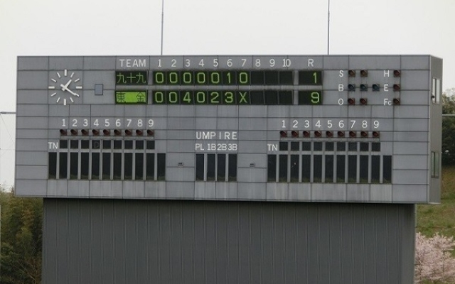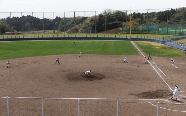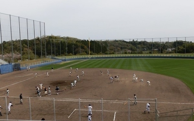 秋元牧場を後にして、茂原市内へ向かう途中に長生の森公園という県立の運動公園があります。その中には野球場やテニスコートがあるのですが、今日はたまたま、高校野球の春季地区予選をやっていました。